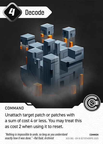 Unattach target patch or patches with a sum of cost 4 or less. You may treat this as cost 2 when using it to reset.