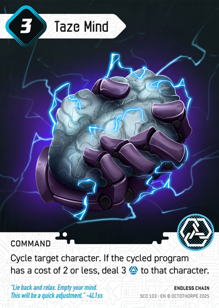 Cycle target character. If the cycled program has a cost of 2 or less, deal 3 [aiDamage] to that character.