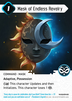 Although I think Mastermind is fun with trying to make the mask and Ravening Swarm work, that slot would almost definitely be better filled with O-Mori to revive Yama if they have ways to unattach the Necrotic Implement. Think of that as being in the sideboard already - if the opposing deck had easily accessible patch removal at all times spread across multiple characters that I can't prevent at all, then in game 2 I would 100% be swapping out Mastermind for O-Mori. I would just run on her the pretty standard setup of Shisha Sosei, Inscrutable Koan then Virus Injection. Even with the nerf making her pay 1 to activate the revive, and the character no longer comes in able to use programs that turn, it's still worth it to force them to keep patch removing the undead stuff instead of the corruption patches. (The reason I included Mastermind in the deck was because of the seemingly broken 0 cost Danse Macabre which would fit perfectly in place of Tooth and Claw, but since it's actually at 3 cost I cut it.)