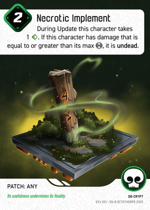 Turn 2: Bronwyn puts Implement on Yama, and trigger her to put 1 damage on herself.