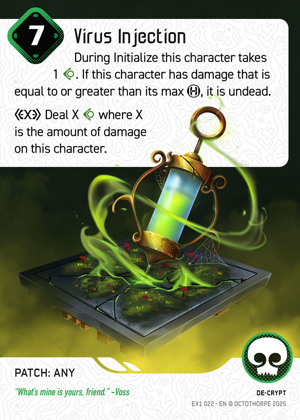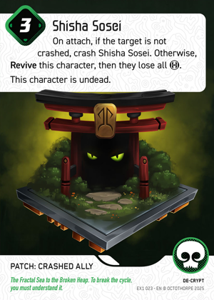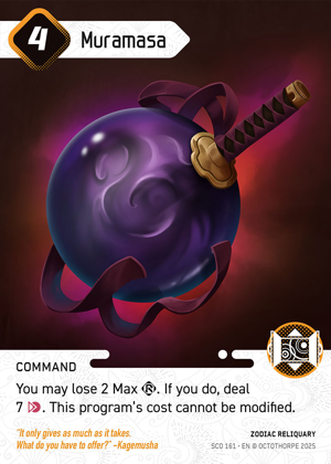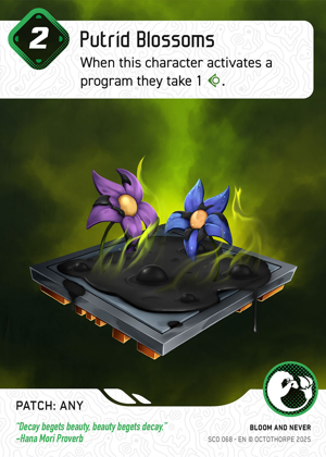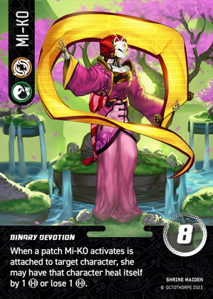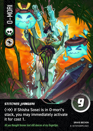 O-Mori is set up with Koan to quickly reset and put Virus on top for a fast gamechanger kill if you have 8 RAM, or leave it on top to push the last 3 to crash a character next turn. If the opponent has only 1 patch removal option and keeps going for Yama, it's fine to put BOTH zombie patches one character; you opponent can only deal with 1, not both each turn.